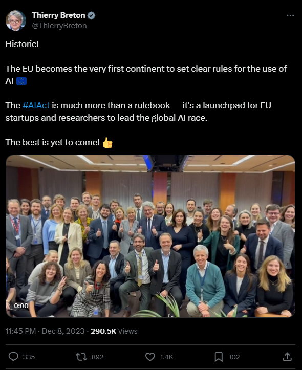 EU-Binnenmarktkommissar Thierry Breton bezeichnete die Einigung als historisch". Die Rechtsvorschriften, die die Kommission im April 2021 vorschlagen wird, könnten weltweit als Modell für die Regulierung von KI dienen.