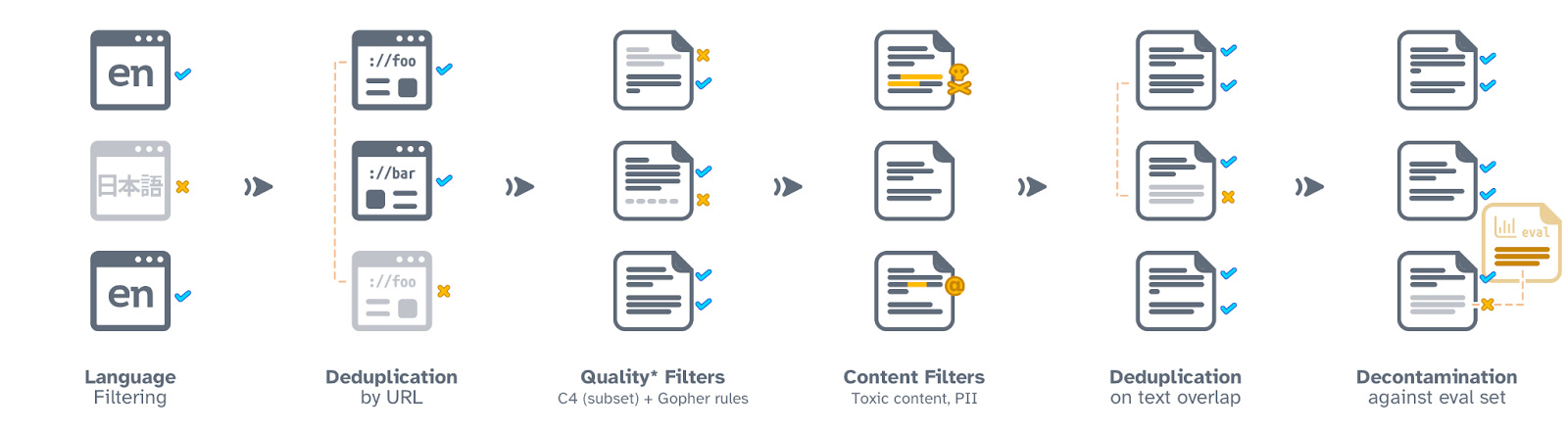 Für die Erstellung von Dolma wurden Daten aus verschiedenen Quellen in bereinigte Textdokumente umgewandelt.