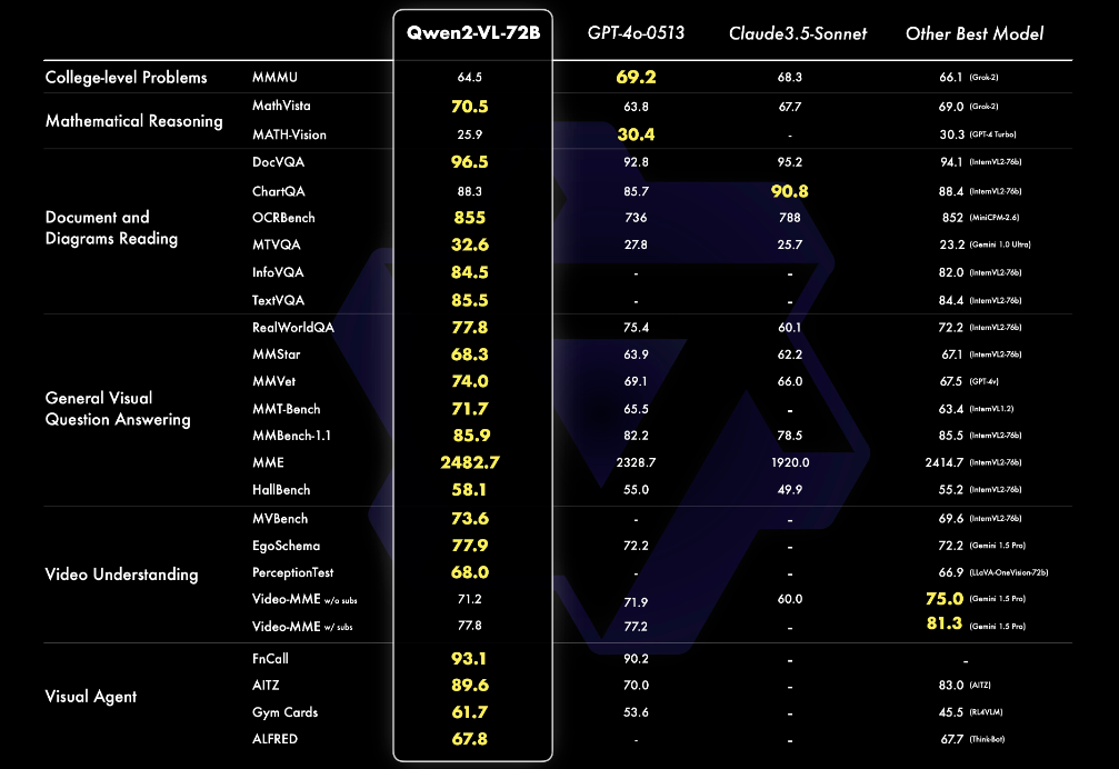 Alibabas KI-Forschungsabteilung Qwen hat eine neue Version seines Vision-Language-Modells Qwen2-VL veröffentlicht. Laut des Qwen-Teams erreicht das Modell in verschiedenen Benchmarks für visuelle Verständnisaufgaben wie MathVista, DocVQA, RealWorldQA und MTVQA State-of-the-Art-Ergebnisse.