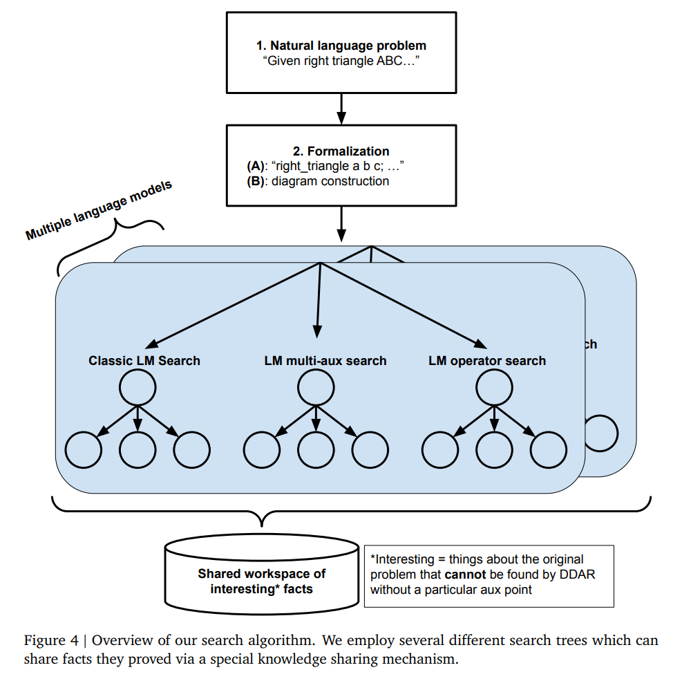 Der Problemlösungsprozess von AlphaGeometry2 besteht aus einer iterativen Suche. In jedem Schritt generiert das Sprachmodell eine Reihe möglicher Hilfsschritte, die dann von DDAR auf logische Konsistenz und Relevanz überprüft werden. Vielversprechende Kandidaten werden beibehalten und in der nächsten Iteration weiterverfolgt.