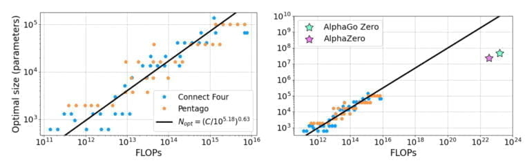 In einer Extrapolation ihrer Ergebnisse zeigt das Team zudem, dass die von Deepmind vorgestellten, bahnbrechenden KI-Systeme AlphaGo Zero und AlphaZero womöglich zu kleine neuronale Netze verwendeten und mit größeren noch bessere Leistung erzielen könnten.