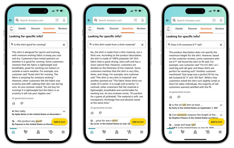 Allerdings hat der KI-Assistent einige Einschränkungen. Er vergleicht keine Produkte, findet keine Alternativen, kennt keinen Preisverlauf und führt keine Aktionen durch, kann also nicht beispielsweise das Produkt zum Warenkorb hinzufügen, was ihn als Shoppinghilfe noch nützlicher machen würde. Außerdem kann er gelegentlich falsche Informationen liefern oder sich weigern, grundlegende Fragen wie den Produktpreis zu beantworten, so Marketplace Pulse.