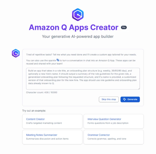 Bei den "Apps" handelt es sich eigentlich um mit Hilfe des LLM erstellte Prompts. Echte Programmierung scheint nicht stattzufinden. Als Beispiele nennt Amazon Prompts für Meeting-Zusammenfassungen, die Generierung von Interviewfragen oder Feedback zur Grammatik in einem Text.
