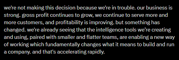 Allerdings könnte Dorsey hier zumindest teilweise "AI-Washing" betreiben, also KI als Grund für ohnehin geplante Kürzungen vorschieben. Bereits im November 2023 hatte Block eine Obergrenze von 12.000 Mitarbeitern angekündigt und erklärt, diese beizubehalten, bis das Geschäftswachstum das Unternehmenswachstum deutlich übertreffe. Diese Grenze wurde 2024 durch Leistungsbewertungen, Zusammenlegung von Teams zum Abbau von Doppelstrukturen und strengere Priorisierung gehalten. Block kündigte damals an, unter dieser Grenze zu bleiben und die Kostendisziplin zu verschärfen.