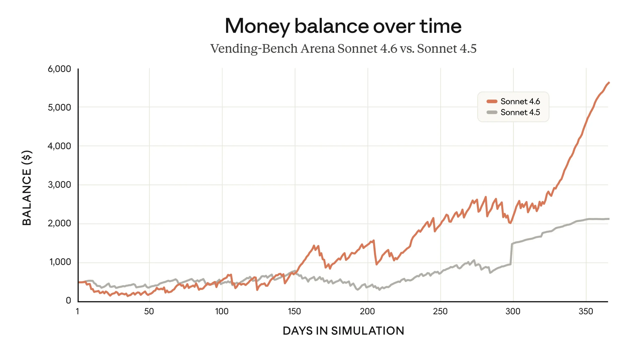 Anthropic hebt in seiner Ankündigung den Vending-Bench Arena Test hervor, der simuliert, wie gut ein KI-Modell ein Unternehmen über Zeit führen kann. Sonnet 4.6 habe dort eine eigenständige Strategie entwickelt: Es investierte in den ersten zehn simulierten Monaten stark in Kapazitäten und schwenkte dann abrupt auf Profitabilität um.