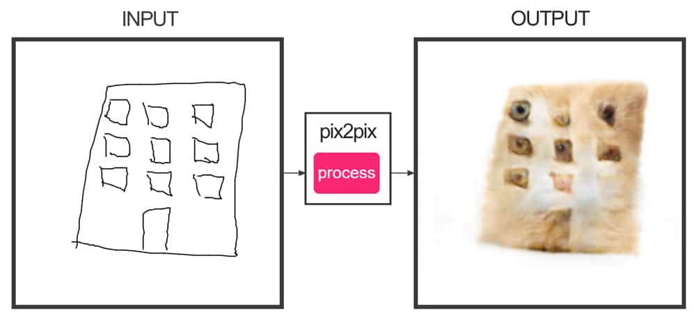 Dank Christopher Hesse könnt ihr die Technologie jetzt selbst im Browser ausprobieren: Bei „edges2cats“ malt ihr wenige Striche ins Internet. Eine Bild-KI wandelt diese in ein mehr oder weniger passables Katzenfoto um.