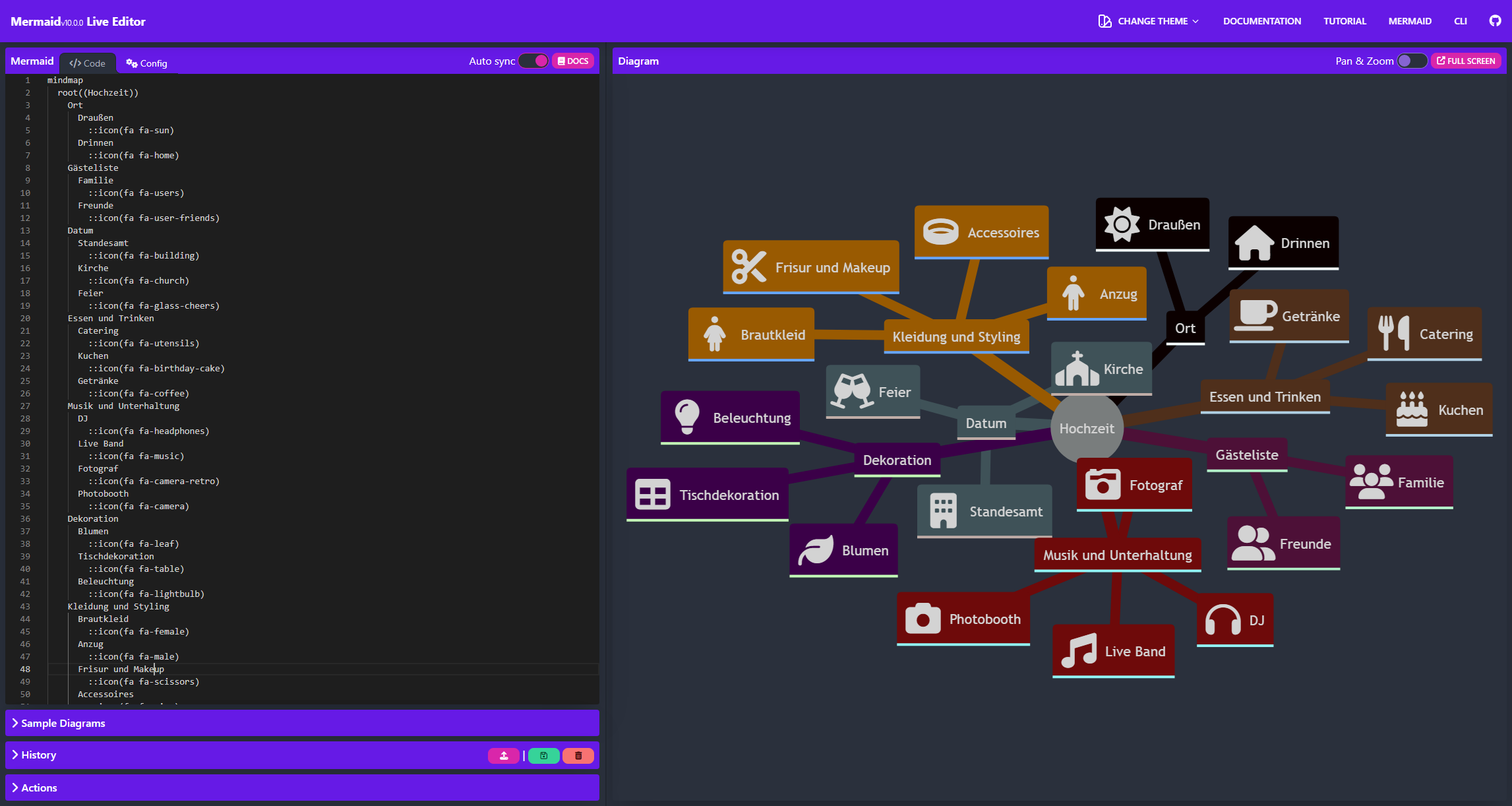 mindmaproot((Wedding))VenueOutdoor::icon(fa fa-sun)Indoor::icon(fa fa-home)Guest ListFamily::icon(fa fa-users)Friends::icon(fa fa-user-friends)