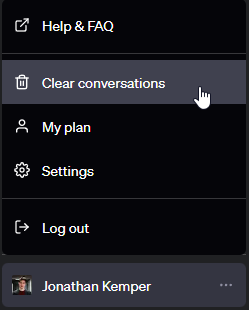 - Chats lassen sich nur mühsam einzeln löschen, aber nicht mehrere auf einmal. Über das Kontextmenü nach Klick auf das Profil links unten gibt es allerdings einen Weg, um alle bisherigen Konversationen zu entfernen. Aber Vorsicht: Dieser Schritt kann nicht rückgängig gemacht werden.