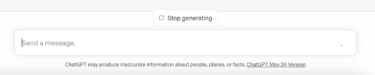 - Die Generierung von Antworten kann mit dem Stop-Knopf über dem Eingabefeld abgebrochen werden.