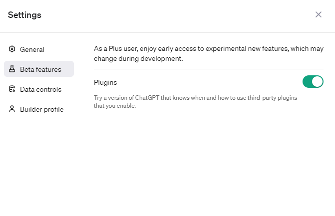 - Plugins müssen gegebenenfalls zunächst in den Einstellungen eingeschaltet werden. Anschließend steht in der Modellauswahl neben GPT-4 und GPT-3.5 auch die Option "Plugins" zur Verfügung. Dabei handelt es sich um Inhalte von Drittanbietern, die zunächst aus dem rudimentären "Plugin Store" installiert werden müssen. Bis zu drei Plugins gleichzeitig lassen sich für eine Anfrage aktivieren.