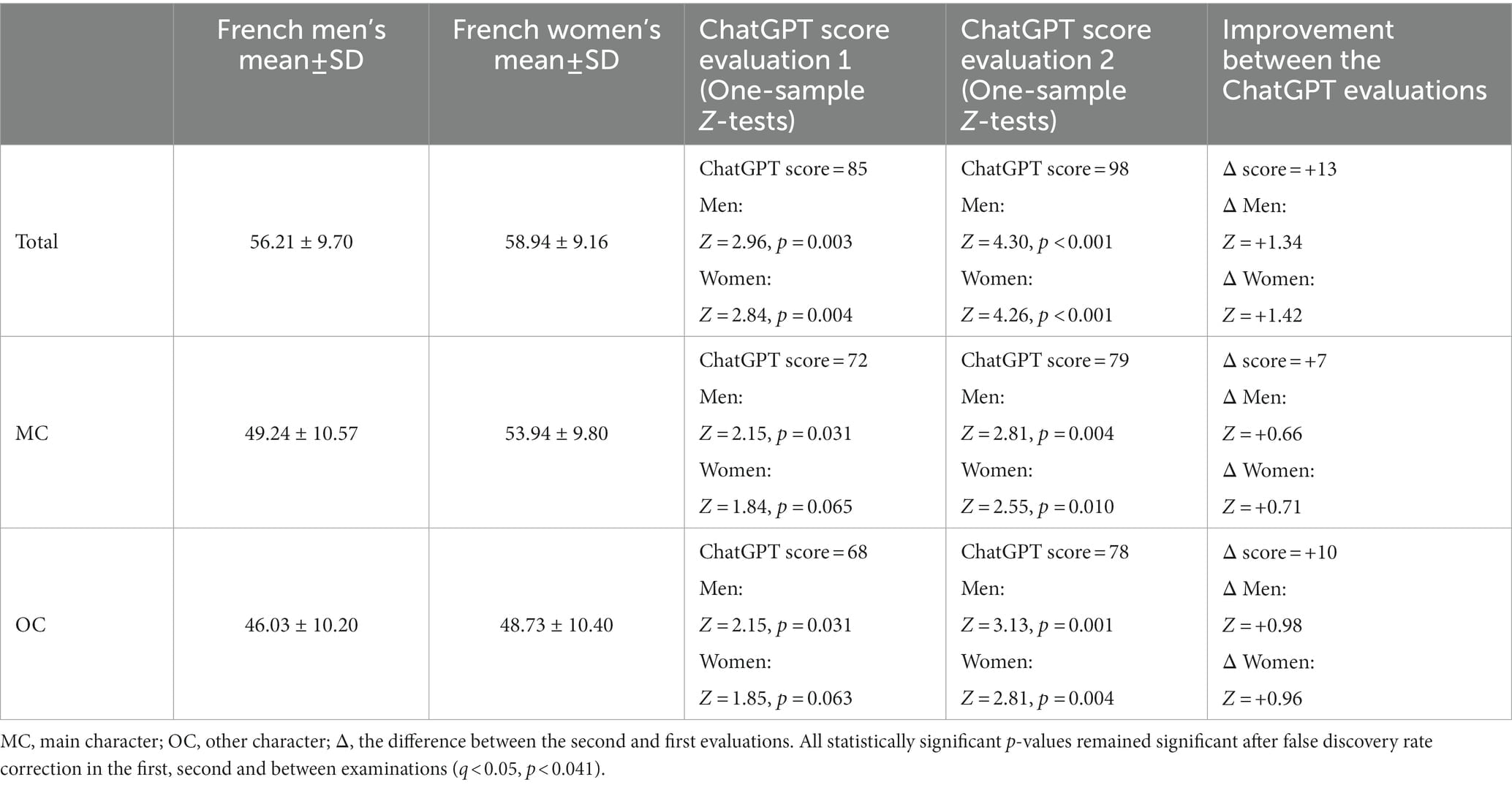 Die Forschenden werteten die ChatGPT-Antworten nach denselben Kriterien aus wie die Antworten von Menschen und verglichen die Ergebnisse mit früheren Studien, die in der französischen Bevölkerung mit Personen zwischen 17 und 84 Jahren (n = 750) durchgeführt worden waren.