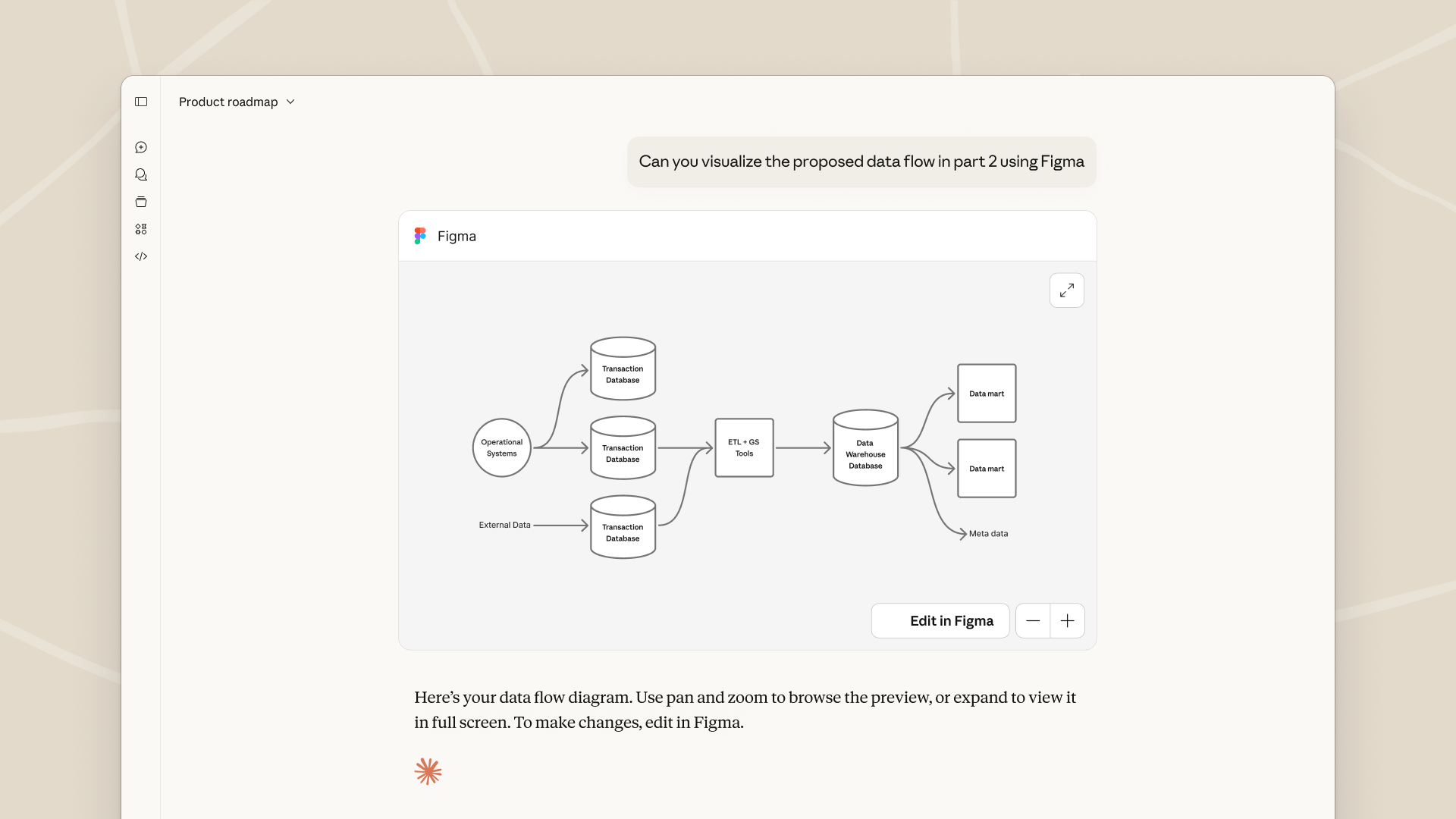 Zum Launch stehen neun interaktive Integrationen bereit, darunter bekannte Anwendungen wie Asana für Projektmanagement, Figma für visuelle Diagramme in FigJam, Canva für Präsentationsdesign und Slack für Nachrichtenentwürfe. Die beiden Screenshots zeigen die Integrationen von Figma und Canva.