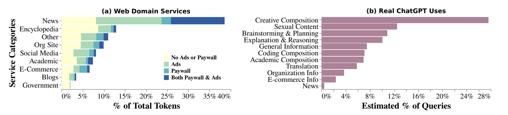 Die Studie zeigt auch, dass die tatsächliche Nutzung von generativen KI-Modellen vom Inhalt ihrer Trainingsdaten abweicht. Dies könnte insofern relevant sein, als Verlage, die KI-Hersteller verklagen, dies unter der Prämisse tun, dass Angebote wie ChatGPT mit den Informationsangeboten der Verlage konkurrieren und diese Fähigkeit auf Basis der Verlagsinhalte erlangt haben.