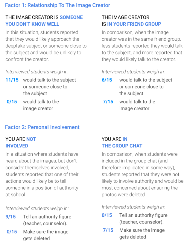 Die Studie zeigt, dass die Nähe zum Vorfall und die eigene Verwicklung entscheidend dafür sind, ob Schüler Deepfake-Vorfälle melden oder nicht. Je stärker involviert, desto geringer ist die Bereitschaft, Lehrkräfte einzuschalten und desto größer der Wunsch nach Vertuschung.