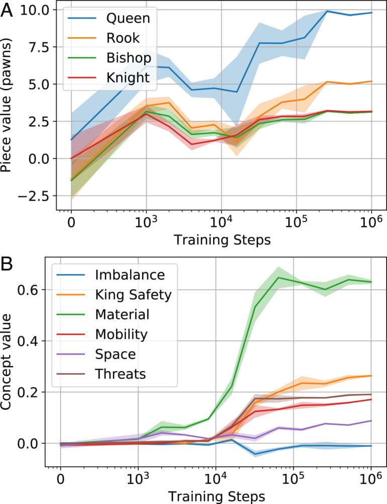 Obwohl das KI-System also keinen Zugang zu menschlichen Partien hatte und nicht von Menschen unterstützt wird, scheint es Konzepte zu lernen, die denen menschlicher Schachspieler:innen gleichen.