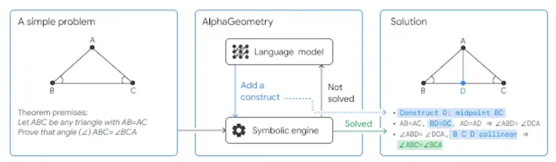 Google Deepmind stellt mit AlphaGeometry ein neues KI-System vor, das beim Lösen von Geometrieaufgaben fast an die Fähigkeiten der weltbesten Schülerinnen und Schüler heranreicht.
