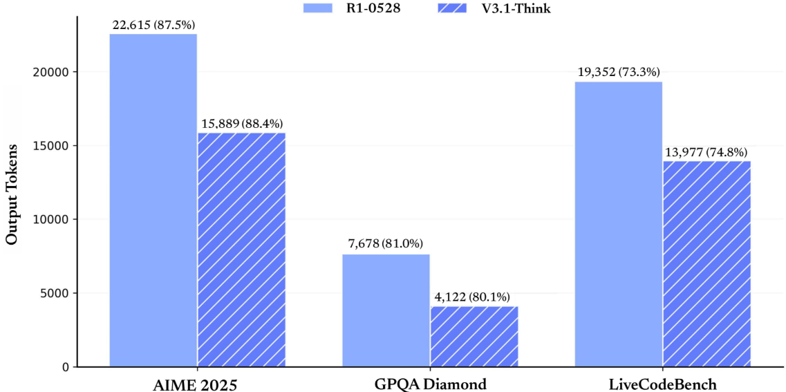 In Benchmarks wie SWE und Terminal-Bench erzielte das neue Modell laut Deepseek verbesserte Ergebnisse und ist effizienter. In Coding-Benchmarks erreicht das Hybrid-Modell Ergebnisse auf Augenhöhe mit den neuesten Hybrid-Modellen von Anthropic und OpenAI. Der Think-Modus liefert zudem schnellere und bessere Antworten als das im Mai aktualisierte Reasoning-Modell Deepseek-R1-0528.