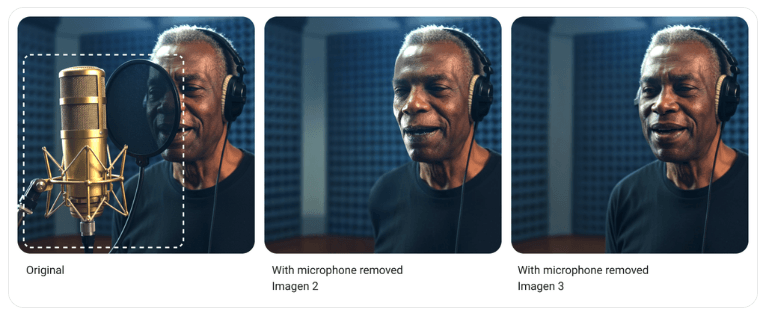 Das Bildmodell Imagen 3 wurde um eine verbesserte Inpainting-Funktionen erweitert. Es kann unerwünschte Objekte entfernen oder beschädigte Bildbereiche rekonstruieren – mit laut Google "signifikant" verbessertem Übergang und Detailwiedergabe.