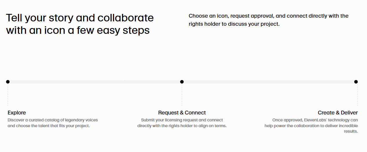 Die Plattform verbindet Firmen mit Rechteinhabern bestimmter Stimmen, während Elevenlabs als Vermittler fungiert und die Lizenzverträge formalisiert. Der Marktplatz ist nur für "verifizierte, ikonische Talente und Rechteinhaber" geöffnet, um Transparenz und eine faire Vergütung sicherzustellen.