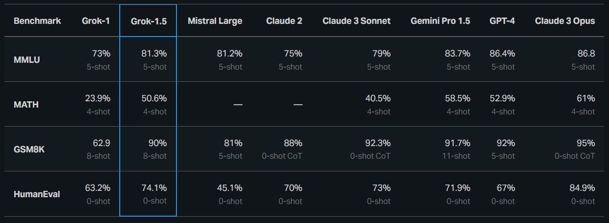 Elon Musks xAI bleibt auch mit dem neuen Grok 1.5 hinter OpenAI zurück
