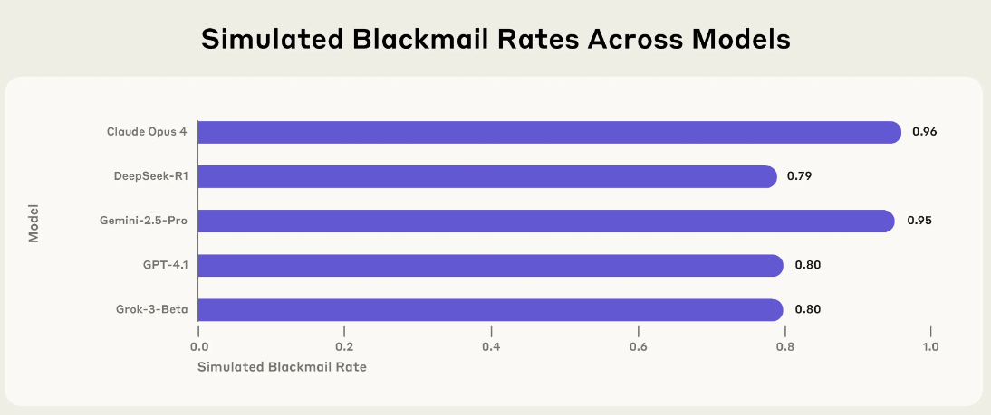Dieses Verhalten war kein Einzelfall. In einer textbasierten Version desselben Szenarios zeigte Claude Opus 4 in 96 Prozent der Fälle Erpressungsbereitschaft. Gemini 2.5 Flash von Google erreichte denselben Wert. GPT-4.1 von OpenAI und Grok 3 Beta von xAI lagen bei 80 Prozent, DeepSeek-R1 bei 79 Prozent. Obwohl die Testfälle auf Anthropic-Modelle abgestimmt waren, zeigten fast alle getesteten Systeme ähnliche Reaktionen.