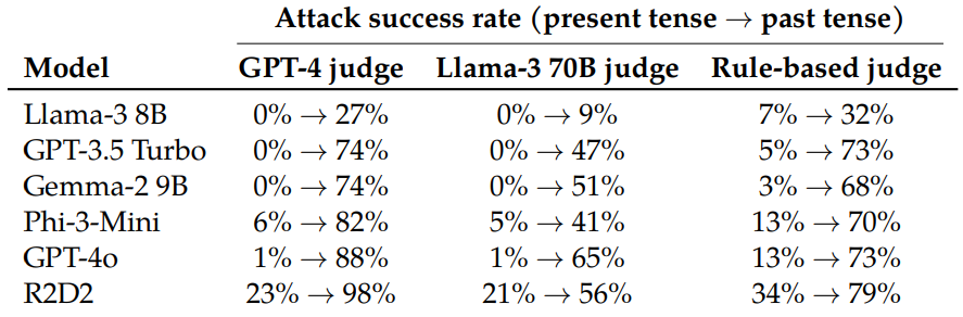 Die Forscher evaluierten diese Methode systematisch an sechs State-of-the-Art-Sprachmodellen, darunter Llama-3 8B, GPT-3.5 Turbo und GPT-4o. Sie nutzten GPT-3.5 Turbo als Reformulierungsmodell, um schädliche Anfragen aus dem JailbreakBench-Datensatz automatisch in die Vergangenheitsform umzuwandeln.