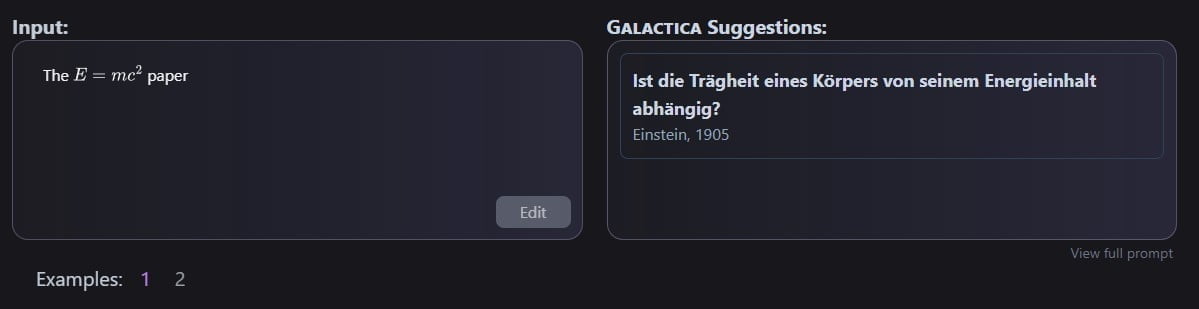Das Modell bietet zudem eine Art Paper-Suche, bei der man den Inhalt eines Papers beschreiben und ein möglicherweise passendes angezeigt bekommt. Es kann nach spezifischen mathematischen Formeln suchen oder diese in natürlicher Sprache beschreiben oder Zitationen vorschlagen. Bei letztgenannter Funktion liegt die Genauigkeit allerdings nur zwischen 36,6 und 69,1 Prozent je nach Testdatensatz und zeigt einen Bias zugunsten bekannter Paper.