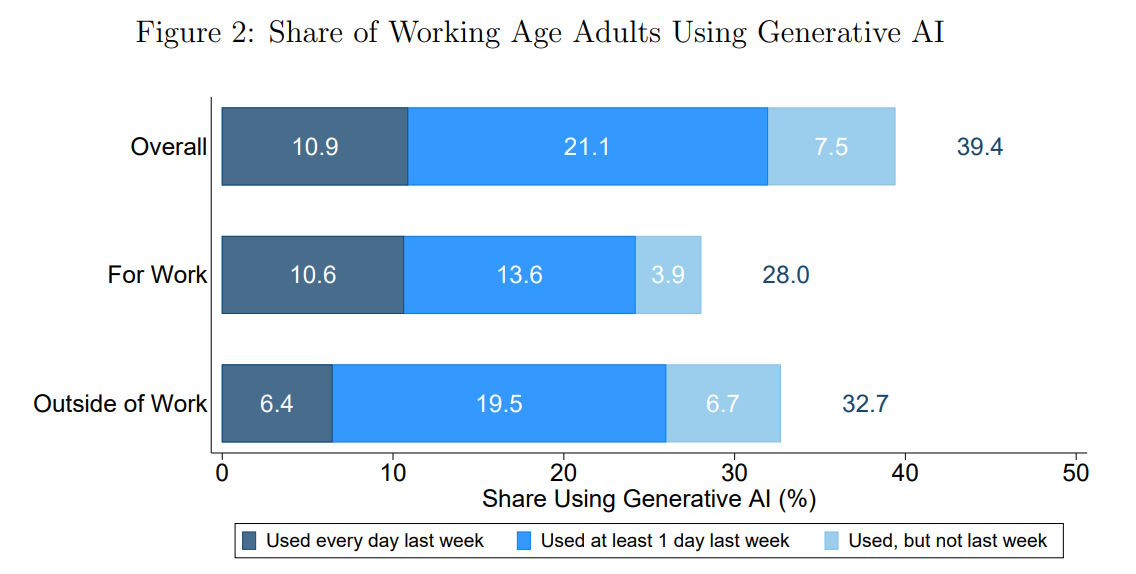 Generative KI-Technologien wie ChatGPT werden schneller angenommen als frühere transformative Technologien wie Personal Computer und das Internet, so eine neue, landesweit repräsentative US-Umfrage.