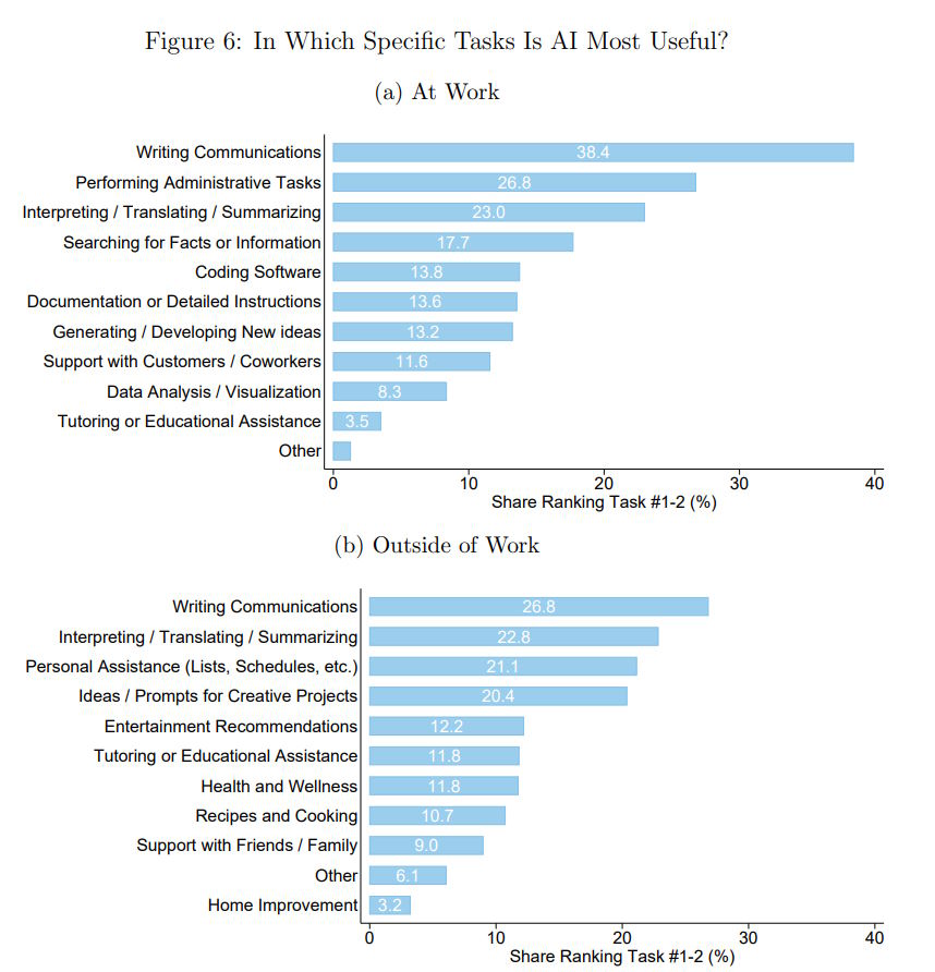 Die Technologie unterstützt eine Vielzahl beruflicher Aufgaben wie Schreiben, Dateninterpretation, Verwaltungsarbeit, Programmierung und Kundensupport. Die Tools verbreiten sich rasant bei Arbeitnehmenden über Branchen und Qualifikationsniveaus hinweg.