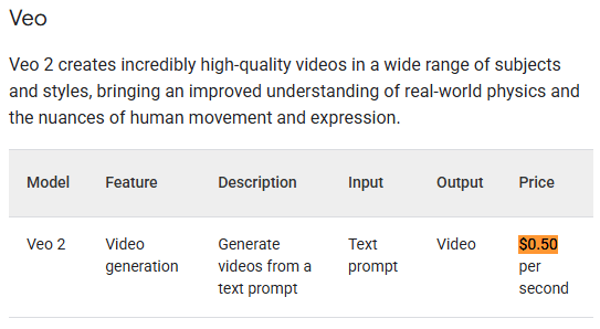 Google veröffentlicht Generierungskosten für sein Videomodell Veo 2 via API.