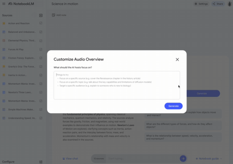 Nutzer können nun die KI-generierten Podcast-Diskussionen zwischen den zwei virtuellen Moderatoren anpassen. Zusätzliche Anweisungen ermöglichen es, den Fokus auf ein bestimmtes Thema oder eine bestimmte Quelle zu legen oder sogar das Zielpublikum anzupassen.