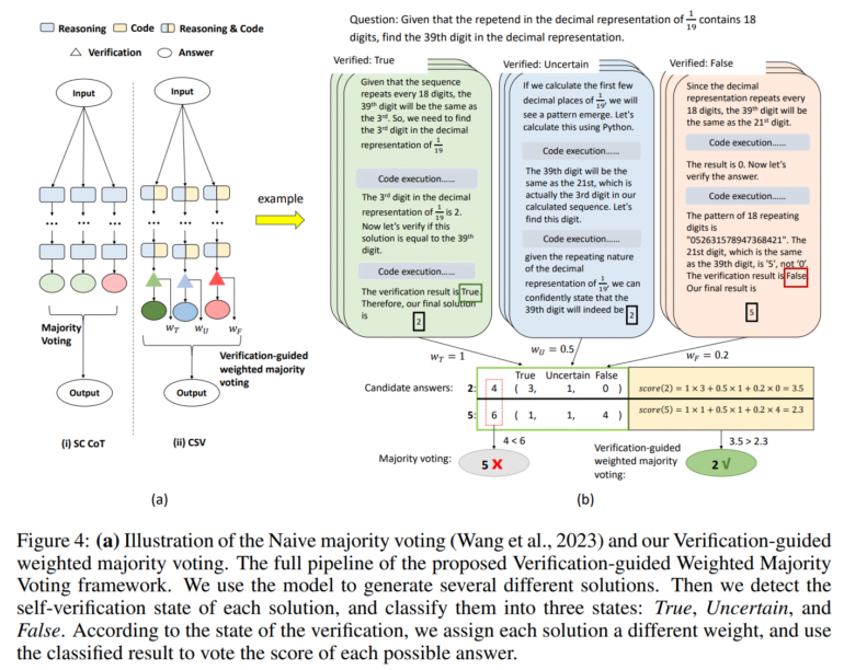 - Die Ergebnisse der Verifizierung fließen in die Mehrheitsentscheidung ein. Antworten, die als wahr verifiziert wurden, erhalten eine höhere Gewichtung, was ein höheres Vertrauen widerspiegelt.