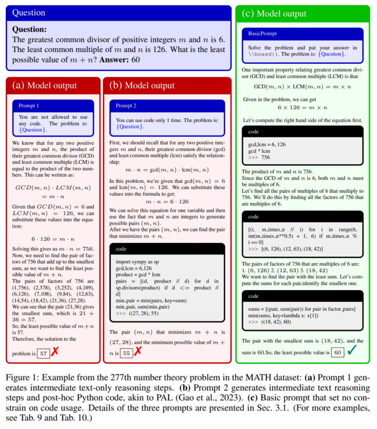 Ausgehend von diesen Erkenntnissen wollten die Forschenden die mathematischen Fähigkeiten des GPT-4 Code-Interpreters weiter verbessern, indem sie auf eine häufigere Code-Ausführung drängten, da dies die Leistung insbesondere bei schwierigeren Problemen verbessert.