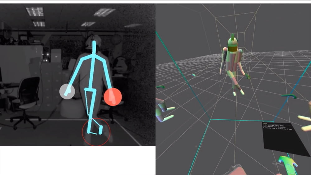 Das Netzwerk lernte anschließend, mit nur einer Tiefenkamera plus VR-Ausrüstung einen kompletten Menschen zu tracken.