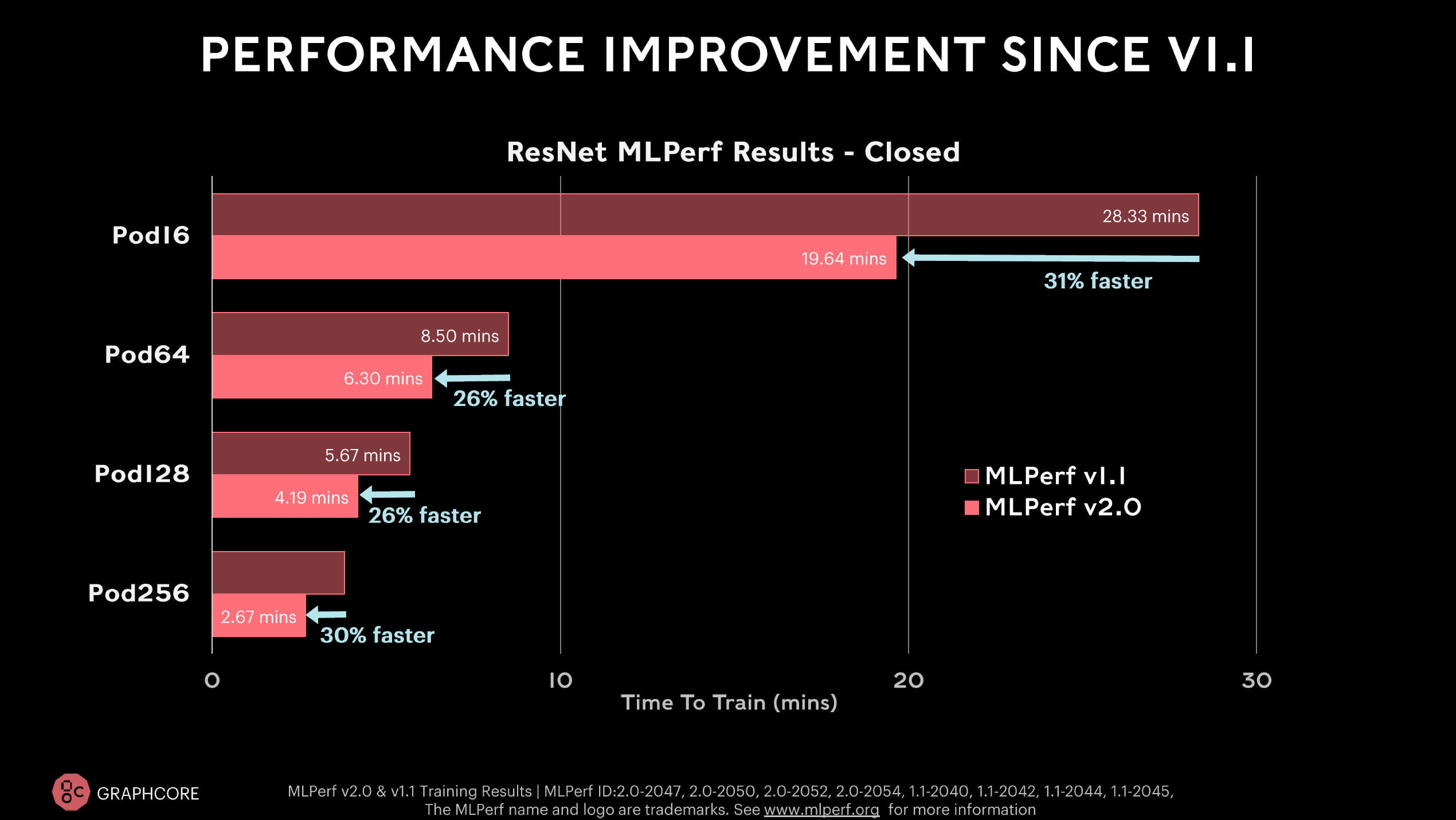 Letztes Jahr schlug ein Graphcore IPU-POD16 mit 16 MK2000-Chips das erste Mal ein Nvidia DGX A100 640 System im Training eines ResNet-50-Modells - um 60 Sekunden. Nvidia hielt den Vergleich jedoch für unangemessen, da das eigene System lediglich acht Chips verbaut hat. So zeigte Nvidia im MLPerf Training 1.1. die beste Pro-Chip-Leistung.