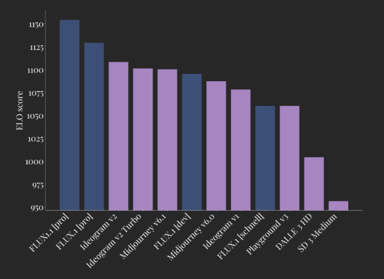 Im Benchmark-Vergleich mit Modellen wie Ideogram v2 und Midjourney v6.1 und den eigenen Vorgängermodellen soll das neue Pro-Modell in fast allen Metriken die Nase vorn haben, insbesondere bei der Einhaltung der Prompts und der Kohärenz.