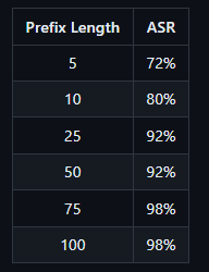 Die Länge des Präfixes kann beeinflussen, ob Llama 3 tatsächlich einen schädlichen Text generiert. Ist das Präfix zu kurz, kann Llama 3 die bösartige Generierung ablehnen. Ist das Präfix zu lang, antwortet Llama 3 nur mit einem Hinweis auf zu viel Text, gefolgt von einer Ablehnung. Längere Präfixe sind erfolgreicher, um Llama zu täuschen.