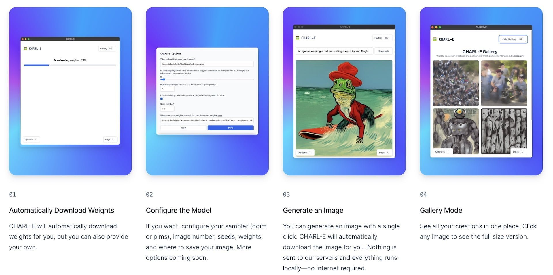- Runs locally, no internet requiredhttps://t.co/nZ3o8HImq4 pic.twitter.com/nwZ4qypBDr— Charlie Holtz (@charliebholtz) September 17, 2022