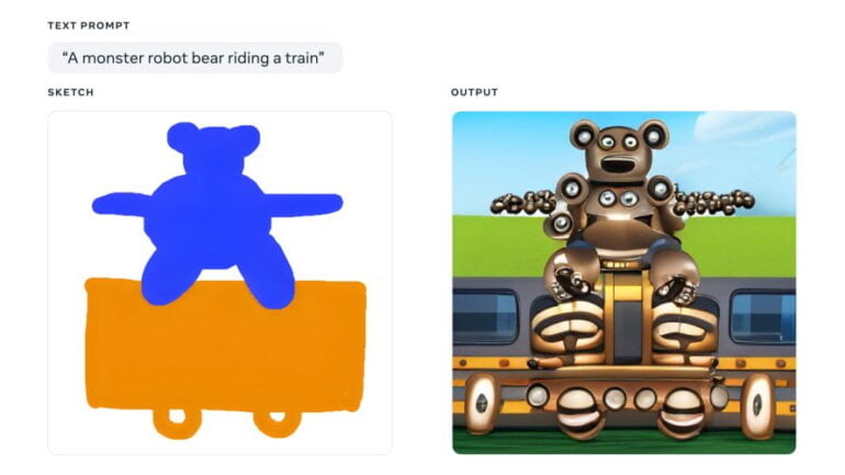 In der Skizze muss dafür das grundlegende Szenen-Layout festgelegt werden. Die Texteingabe füllt das Gerüst dann mit KI-Kreationen. Das Modell könne zudem auch eigene Layouts per Texteingabe erstellen - damit geben Nutzer:innen allerdings einen Teil der Kontrolle wieder ab.