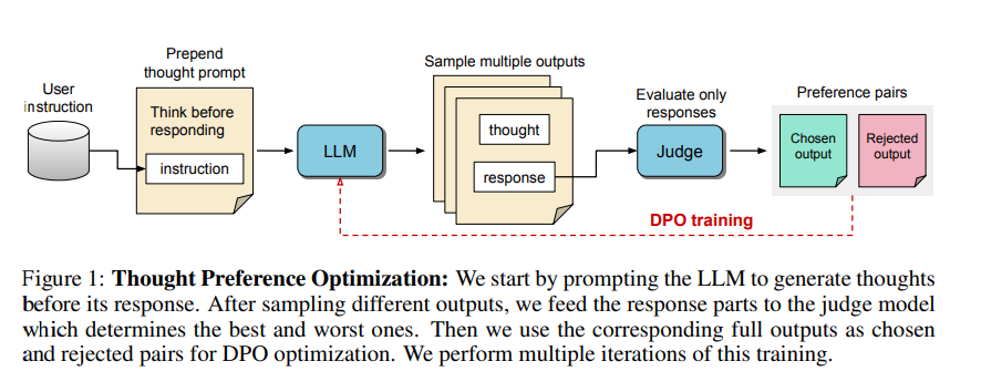 Forscher von Meta FAIR, der University of California, Berkeley und der New York University haben eine neue Methode namens "Thought Preference Optimization" (TPO) entwickelt, um große Sprachmodelle (LLMs) zum "Denken" vor dem Antworten zu bringen. Laut der Studie soll dieser Ansatz die Leistung der Modelle bei allgemeinen Aufgaben verbessern, nicht nur bei mathematischen oder logischen Problemen.