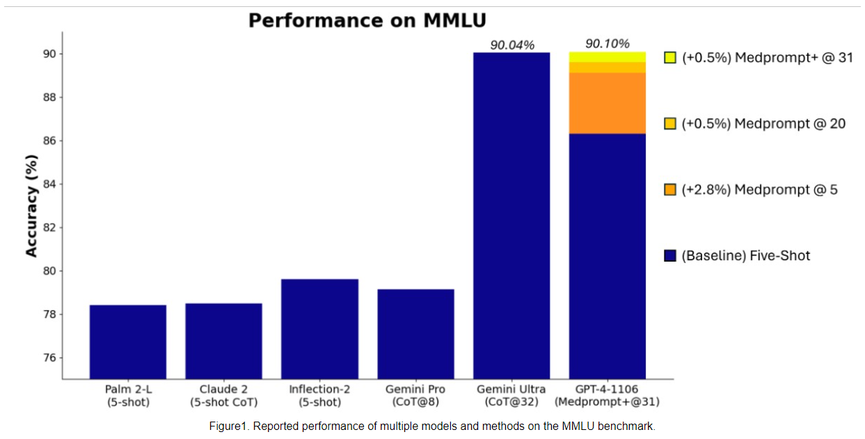 Durch die Ansteuerung von GPT-4 mit einer modifizierten Version von Medprompt hat Microsoft nun einen neuen State-of-the-Art (SoTA) Wert im MMLU Benchmark erreicht.