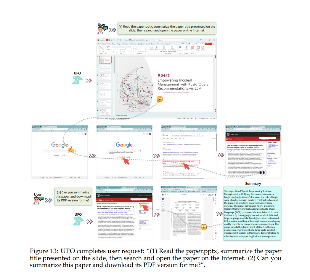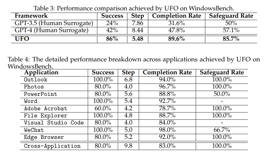 Die Leistung von UFO wurde anhand des WindowsBench-Tests bewertet, der 50 Benutzeranfragen in neun gängigen Windows-Anwendungen wie Outlook, PowerPoint, dem Dateiexplorer oder Adobes Acrobat Reader umfasst.