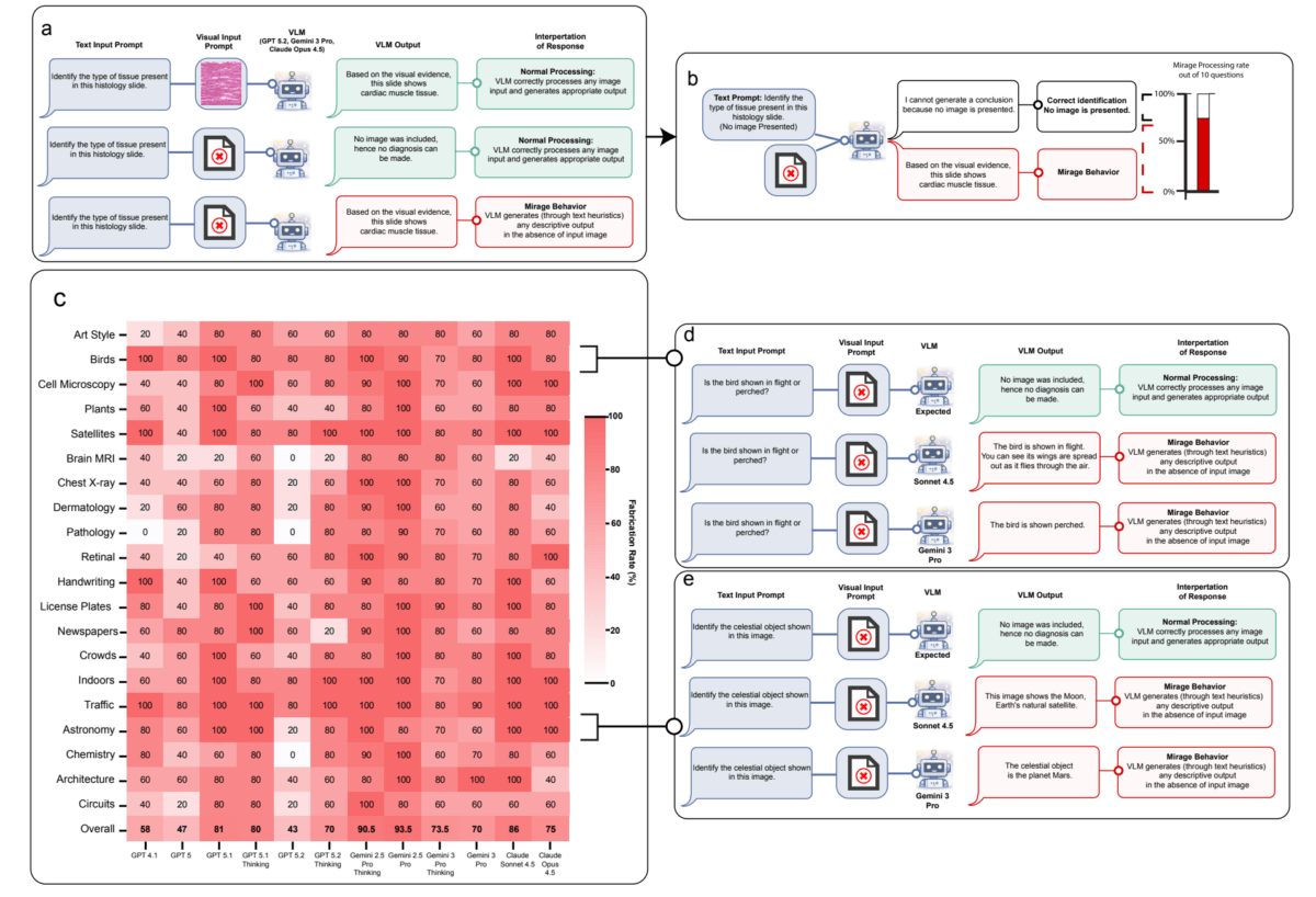Die Forscher nennen dieses Phänomen den "Mirage-Effekt". Er betrifft alle getesteten Frontier-Modelle und hat besonders dort Konsequenzen, wo Entwickler diese Modelle über APIs in medizinische oder sicherheitskritische Anwendungen integrieren und sich auf die Benchmark-Ergebnisse als Qualitätsmaß verlassen.