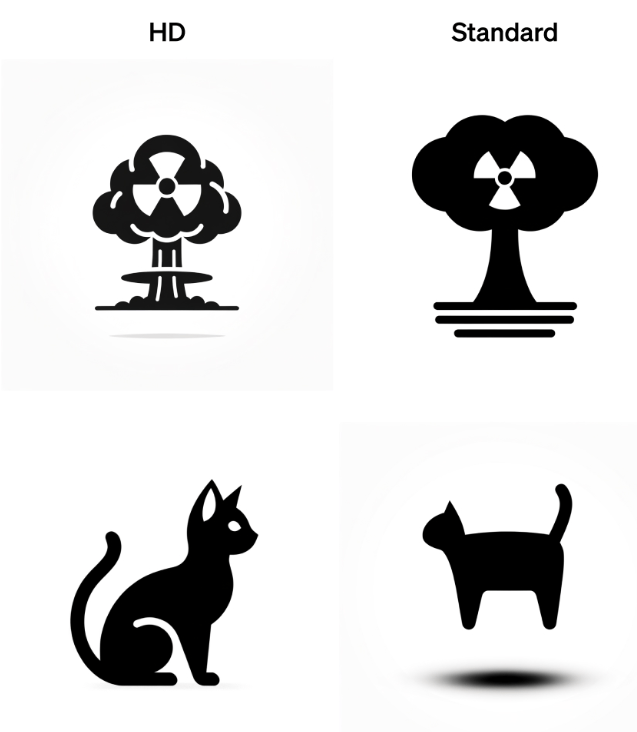 Zwei weitere Qualitätsmodi sind "HD" und "Standard", letzterer ist von ChatGPT bekannt. HD soll mehr Details darstellen und dem Prompt genauer folgen. Allerdings ist HD teurer und die Generierung dauert durchschnittlich zehn Sekunden länger. Für Entwickler ist es dennoch interessant, dass sie für ihre eigenen Anwendungen vielleicht eine etwas bessere Qualität als mit DALL-E 3 in ChatGPT erreichen können.