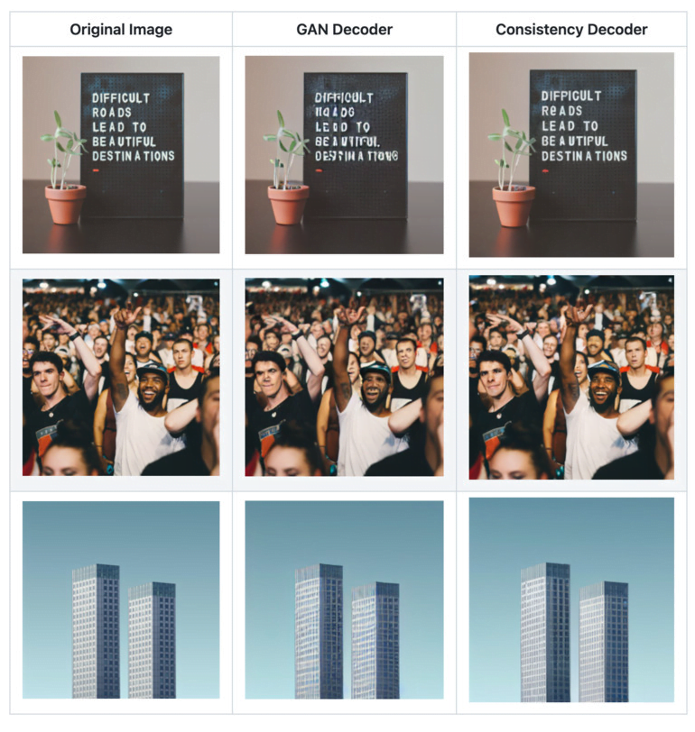 Der OpenAI Consistency Decoder ist ein Open-Source-Upgrade für den Decoder, der im Stable Diffusion Variational Autoencoder (VAE) verwendet wird. Er verwendet Konsistenztraining, um die Bilderzeugung zu verbessern, insbesondere bei Text, Gesichtern und geraden Linien. Er ist vollständig kompatibel mit Stable Diffusion 1.0+ VAE. Verbesserungen durch den neuen Decoder kann man hier ansehen oder hier.