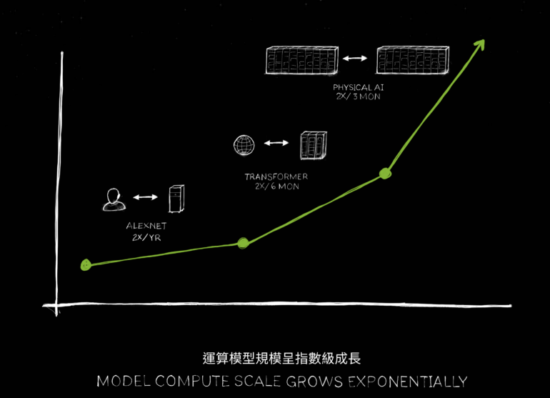 Ein möglicher Weg dorthin könnten KI-Modelle sein, die mehr von der physikalischen Welt verstehen: "Die nächste KI-Generation muss physikalisch fundiert sein, die meisten heutigen KI-Systeme verstehen die Gesetze der Physik nicht, sie sind nicht in der physikalischen Welt verankert", so Huang in seiner Präsentation.