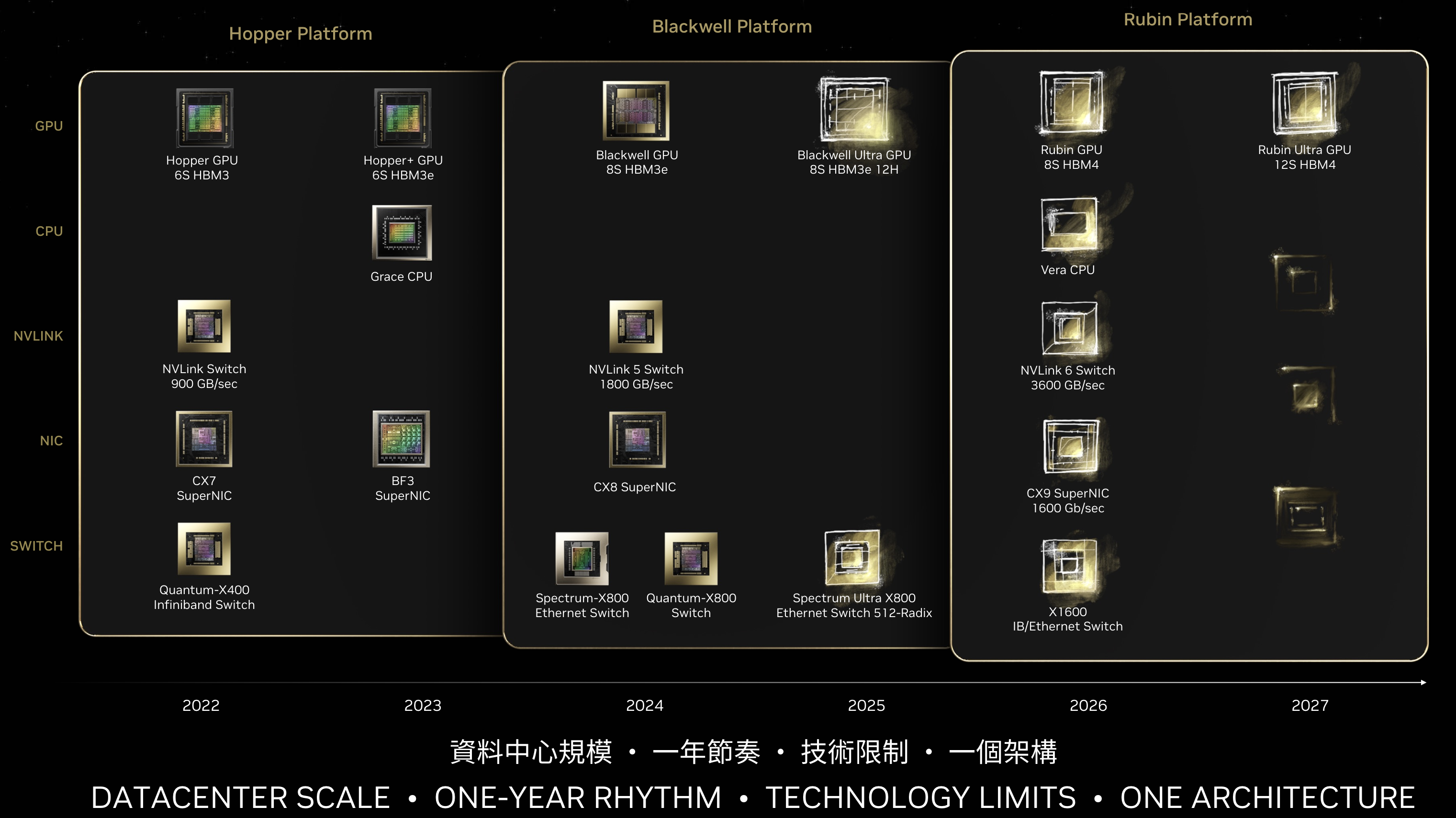 Nvidia hat auf der Computex 2024 in Taiwan einen Ausblick auf seine GPU- und Interconnect-Roadmap bis 2027 gegeben. In seiner Keynote betonte CEO Jensen Huang die Notwendigkeit, die Leistung kontinuierlich zu steigern und gleichzeitig die Kosten für Training und Inferenz zu senken, damit jedes Unternehmen KI nutzen kann.