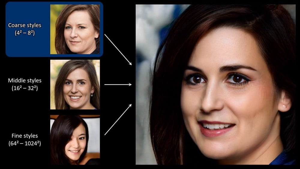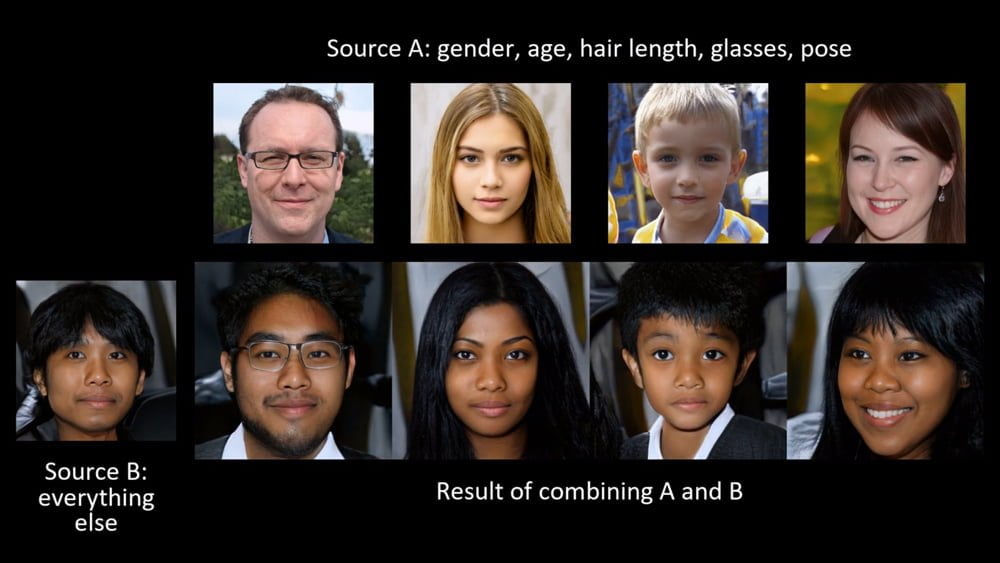 Ältere Fake-Foto-Lösungen fassen schon eine andere T-Shirt Farbe oder fehlende Ohren als hinreichende Änderung an einem Portrait auf. Durch die variablen, aber vorgegebenen Detailstufen ist bei Nvidias neuer KI sichergestellt, dass Änderungen visuell immer sinnvolle Ergebnisse produzieren.