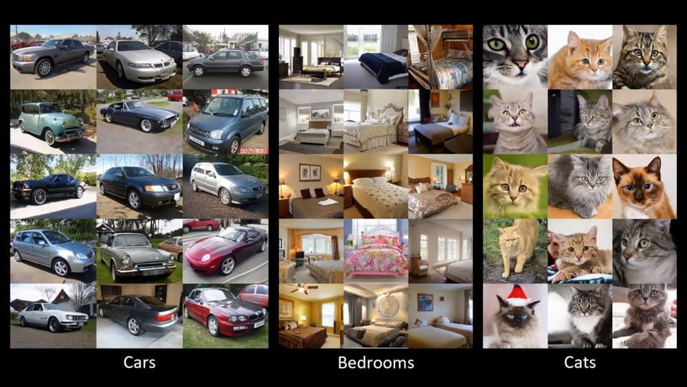 Das System taugt nicht allein für Gesichter: Die Forscher haben ihre KI auch auf Autos, Katzen und Schlafzimmer losgelassen. In allen Fällen sind die Ergebnisse beeindruckend realistisch.