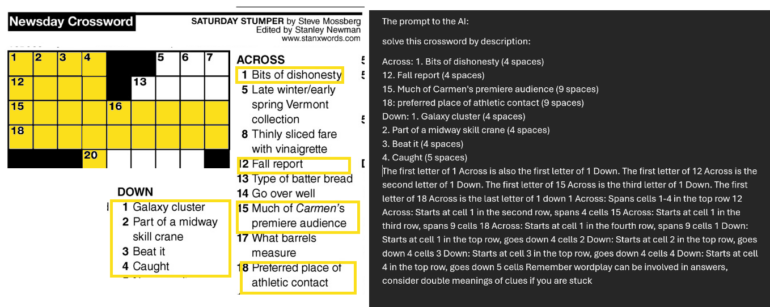 Mollick weist aber auch darauf hin, dass das Modell seinen Vorgänger nicht in allen Bereichen schlägt. So sei es zum Beispiel beim Schreiben nicht überlegen, was auch die eigenen Auswertungen von OpenAI zeigten. Er demonstriert die Fähigkeiten und Grenzen des Modells anhand eines komplexen Kreuzworträtsels, bei dem das Modell zunächst Schwierigkeiten hatte, es aber nach einem entscheidenden Hinweis richtig löste.